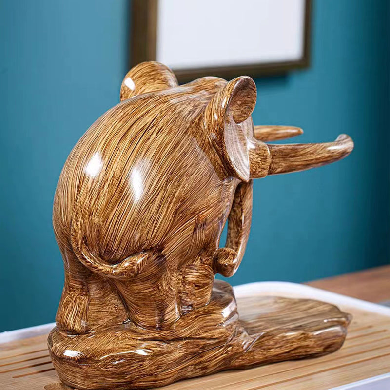 This tea set is in the shape of an elephant, which heralds peace and auspiciousness, and is a symbol of strength and abundance.
